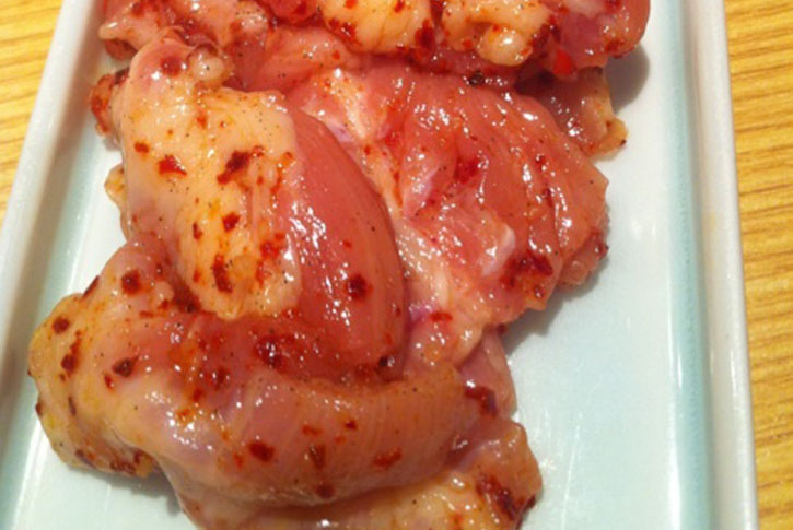 鶏の首肉で味のある部位。韓国風の味付けでお酒に会うおつまみ的な逸品。