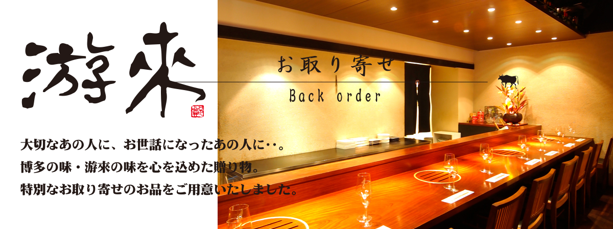 大切なあの人に、お世話になったあの人に‥。博多の味・游來の味を心を込めた贈り物。